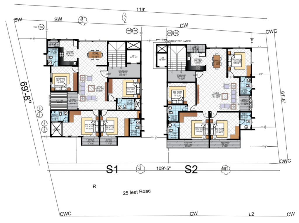 Provision for installation of Split AC in Living and Bedrooms